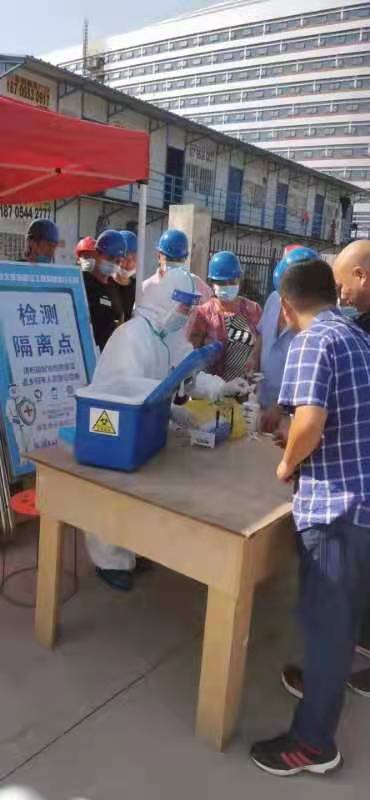 三是集中檢測,排查疫情風(fēng)險。針對部分外地來淮務(wù)工人員核酸檢測難的問題,特邀人民醫(yī)院檢測中心到施工現(xiàn)場對40余名外來務(wù)工人員進(jìn)行集體核酸檢測。