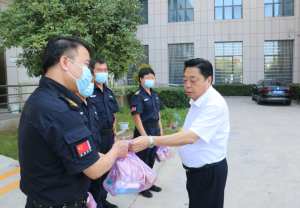 在送清涼活動(dòng)中,保安公司一線(xiàn)職工無(wú)懼酷暑環(huán)境,堅(jiān)守在自己的工作崗位上,默默付出,盡職履責(zé)。周開(kāi)宇對(duì)烈日下工作的職工給予了高度贊揚(yáng),將關(guān)愛(ài)送到大家的心坎上,并叮囑大家在做好疫情防控工作的同時(shí)做好防暑降溫工作,注意勞逸結(jié)合,確保各項(xiàng)工作的安全運(yùn)行。