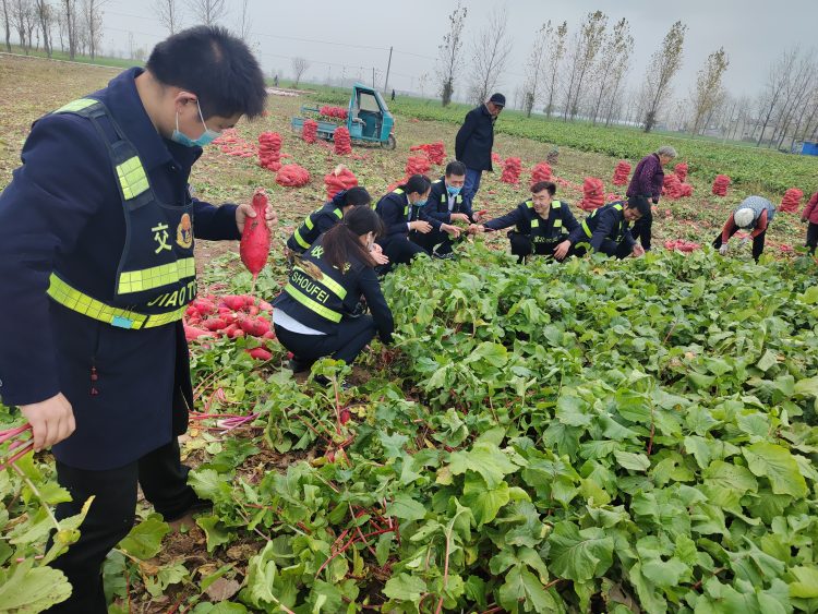 今年11月正值蘿卜上市的關(guān)鍵時期,可是偏偏遇上疫情來襲,愁壞了臨渙鎮(zhèn)前袁樓村的農(nóng)戶,因缺少勞動力,銷售渠道也減少,蘿卜滯銷。堅守在S202收費站的黨員干部了解到該情況后,在積極應(yīng)對疫情防控的同時,主動對接農(nóng)戶,收費之余組織站內(nèi)員工來到田間地頭,在農(nóng)戶的指導(dǎo)下,協(xié)助采收、打包、搬運,大家忙得熱火朝天。本次助農(nóng)活動,不僅收獲了勞動豐收的喜悅,勞作之余,在場的每名員工還自掏腰包購買滯銷蘿卜,用實際行動為群眾辦實事,辦好事,為鄉(xiāng)村振興貢獻(xiàn)了微薄之力,受到當(dāng)?shù)匕傩盏囊恢潞迷u。