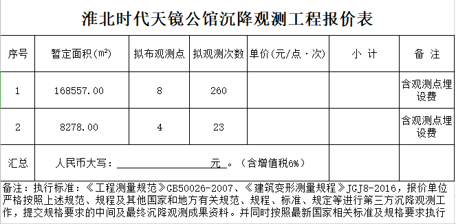 4.7時(shí)代天境公館沉降觀測工程報(bào)價(jià)表(附件四)