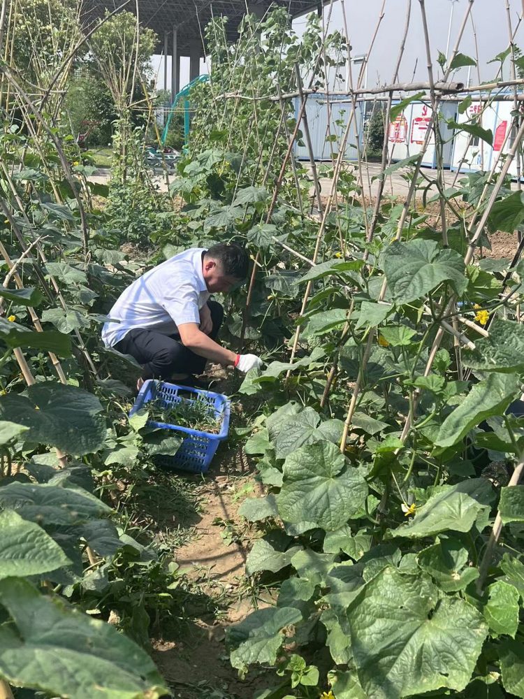 活動(dòng)現(xiàn)場(chǎng),天氣雖然炎熱但擋不住黨員勞動(dòng)的熱情,領(lǐng)取了勞動(dòng)工具后,分工協(xié)作,按照分配好的耕作區(qū)域開(kāi)始認(rèn)真勞作,清理站內(nèi)綠化草坪并按照要求進(jìn)行分類投放,清理的雜草作為站內(nèi)飼養(yǎng)牲畜的飼料,做到物盡其用,采摘下來(lái)的蔬菜水果作為食堂食材,不僅豐富了職工的“菜盤子”,還降低了收費(fèi)站食堂運(yùn)營(yíng)成本。