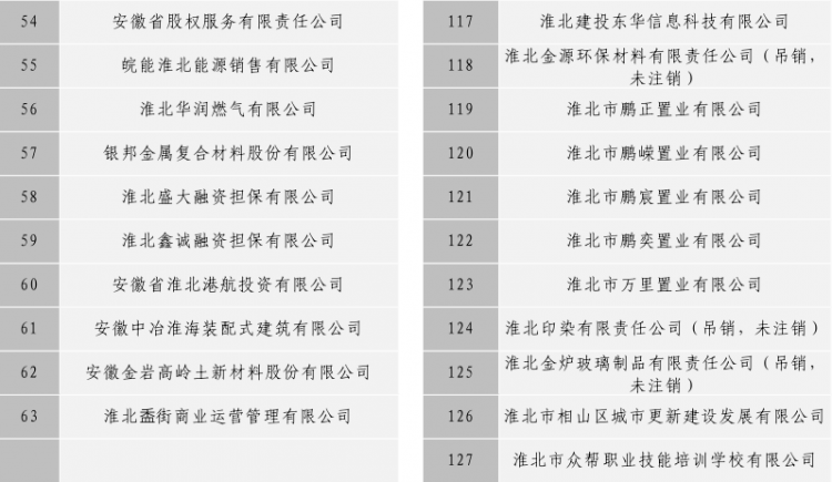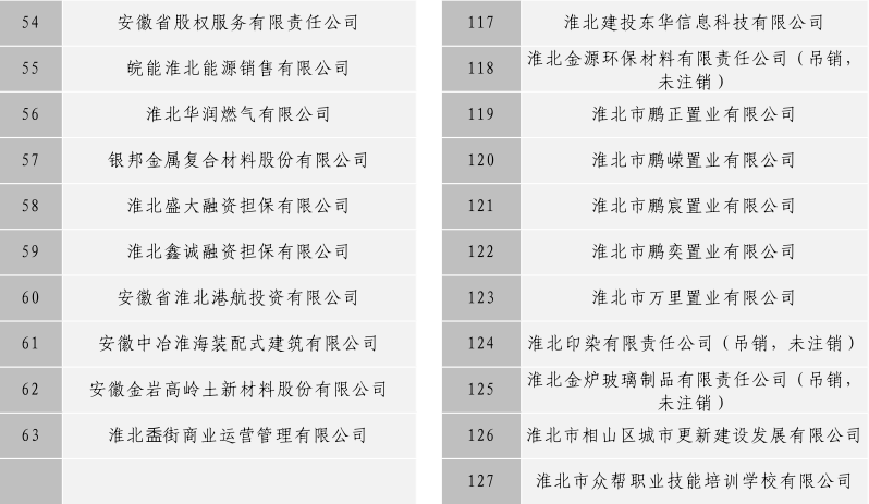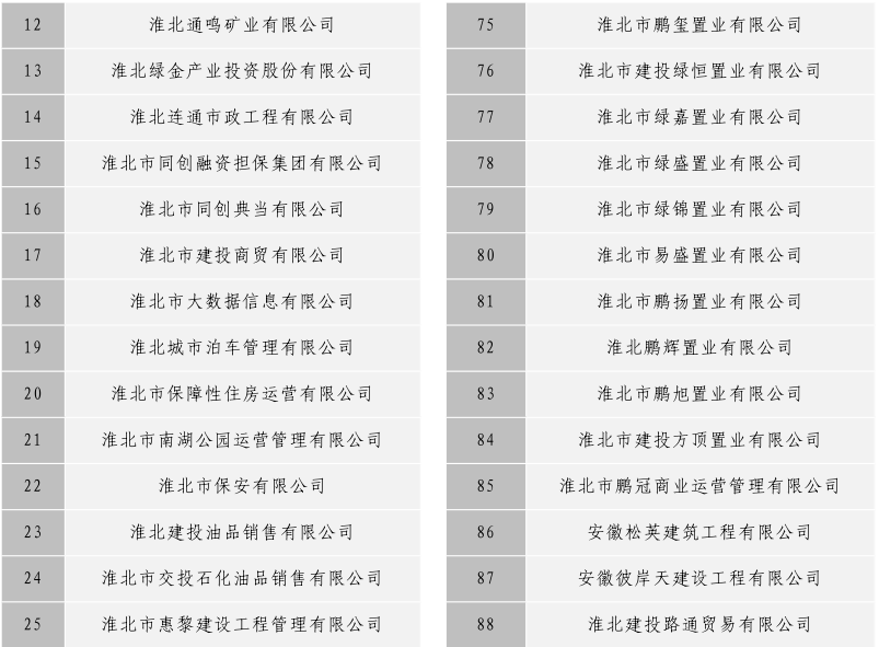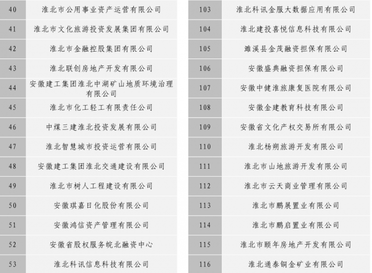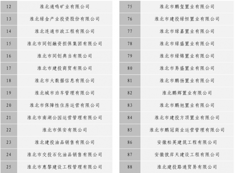 淮北市建投控股集團(tuán)有限公司全級次企業(yè)名單目錄