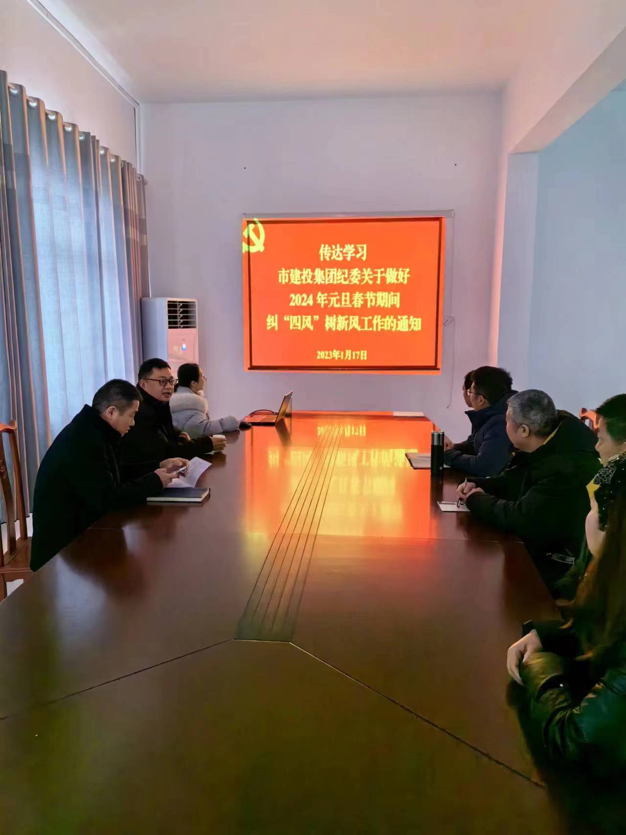 2024年春節(jié)將至,為貫徹落實(shí)《市建投集團(tuán)紀(jì)委關(guān)于做好2024年元旦春節(jié)期間糾“四風(fēng)”樹新風(fēng)工作的通知》文件精神,啟航市政公司黨支部全體黨員以集體學(xué)習(xí)的形式傳達(dá)學(xué)習(xí)了《市建投集團(tuán)紀(jì)委關(guān)于做好2024 年元旦春節(jié)期間糾“四風(fēng)”樹新風(fēng)工作的通知》。