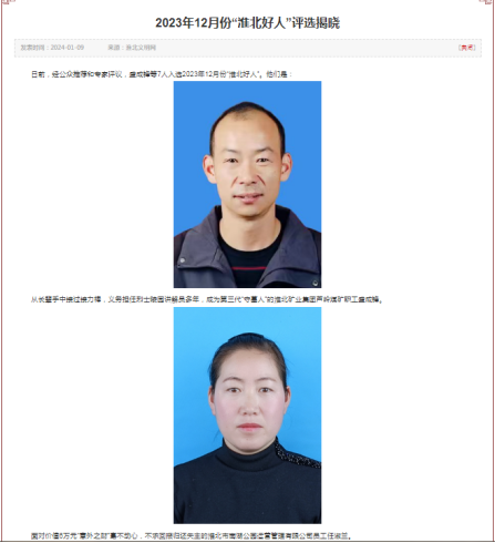 南湖公園公司第一時間將任淑蘭的事跡整理上報市文明辦參加“淮北好人”評選,2024年1月份評選揭曉,經(jīng)過公眾推薦和專家評議,面對價值6萬元“意外之財”毫不動心,不求回報歸還失主的任淑蘭成功當(dāng)選2023年12月份“淮北好人”。