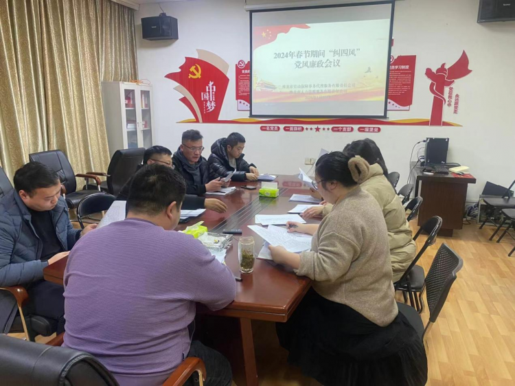 2024年春節(jié)將至,為貫徹落實《市建投集團紀委關(guān)于做好2024年元旦春節(jié)期間糾“四風”樹新風工作的通知》文件精神,勞代公司黨支部召開了2024年春節(jié)前糾“四風”黨風廉政會議,全體黨員及公司員工參加了本次會議。