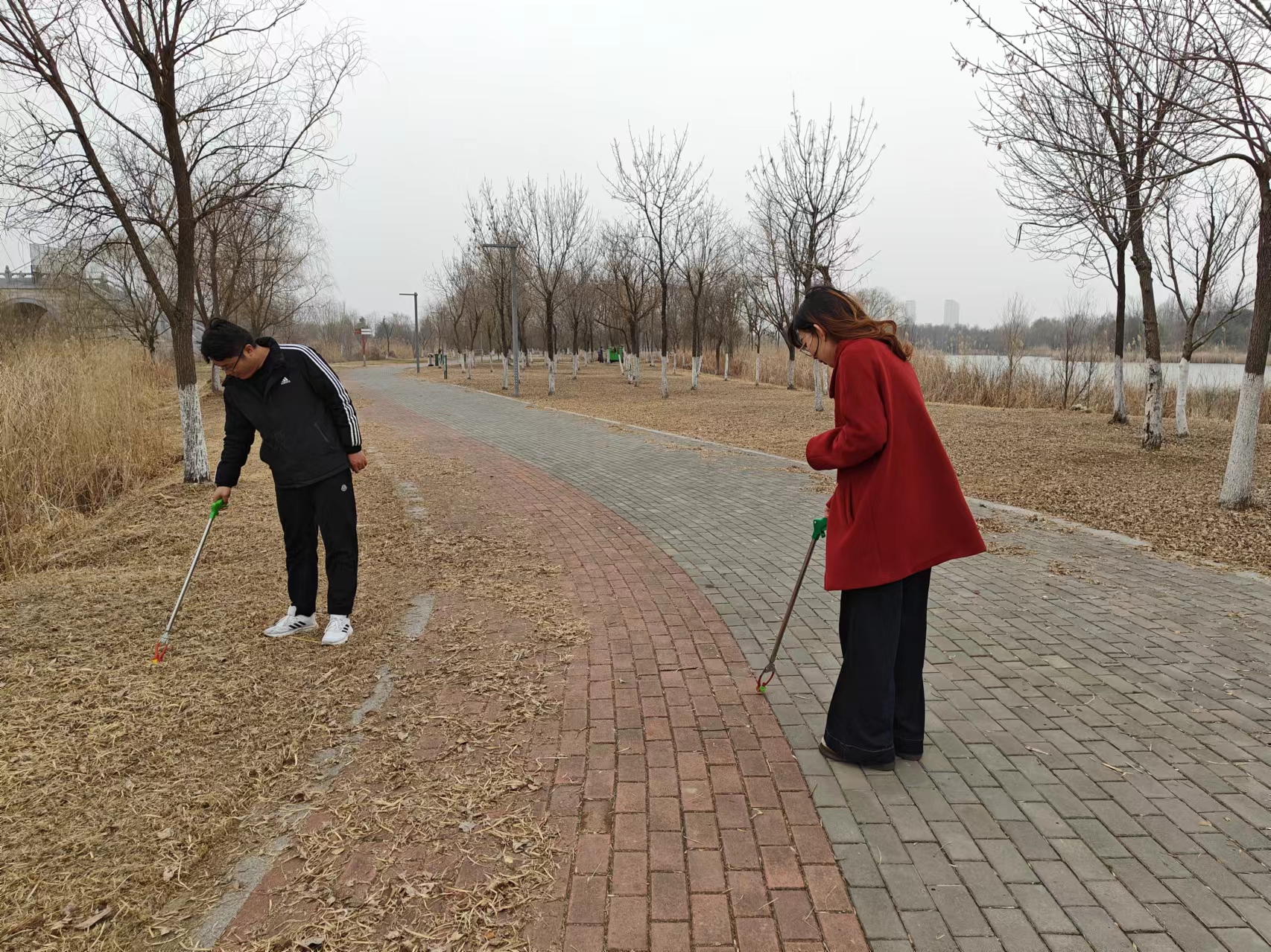 冒著毛毛細(xì)雨,南湖傳媒黨支部全體黨員前往南湖公園進(jìn)行活動(dòng)。他們有的拿著夾子和掃帚,對(duì)公園道路兩側(cè)及草坪內(nèi)的垃圾、紙屑、煙頭進(jìn)行清理。有的前往“植樹(shù)區(qū)”進(jìn)行挖坑、培土、澆水。每個(gè)人都奮力在自己“崗位”上,為打造美好家園貢獻(xiàn)自己的力量。
