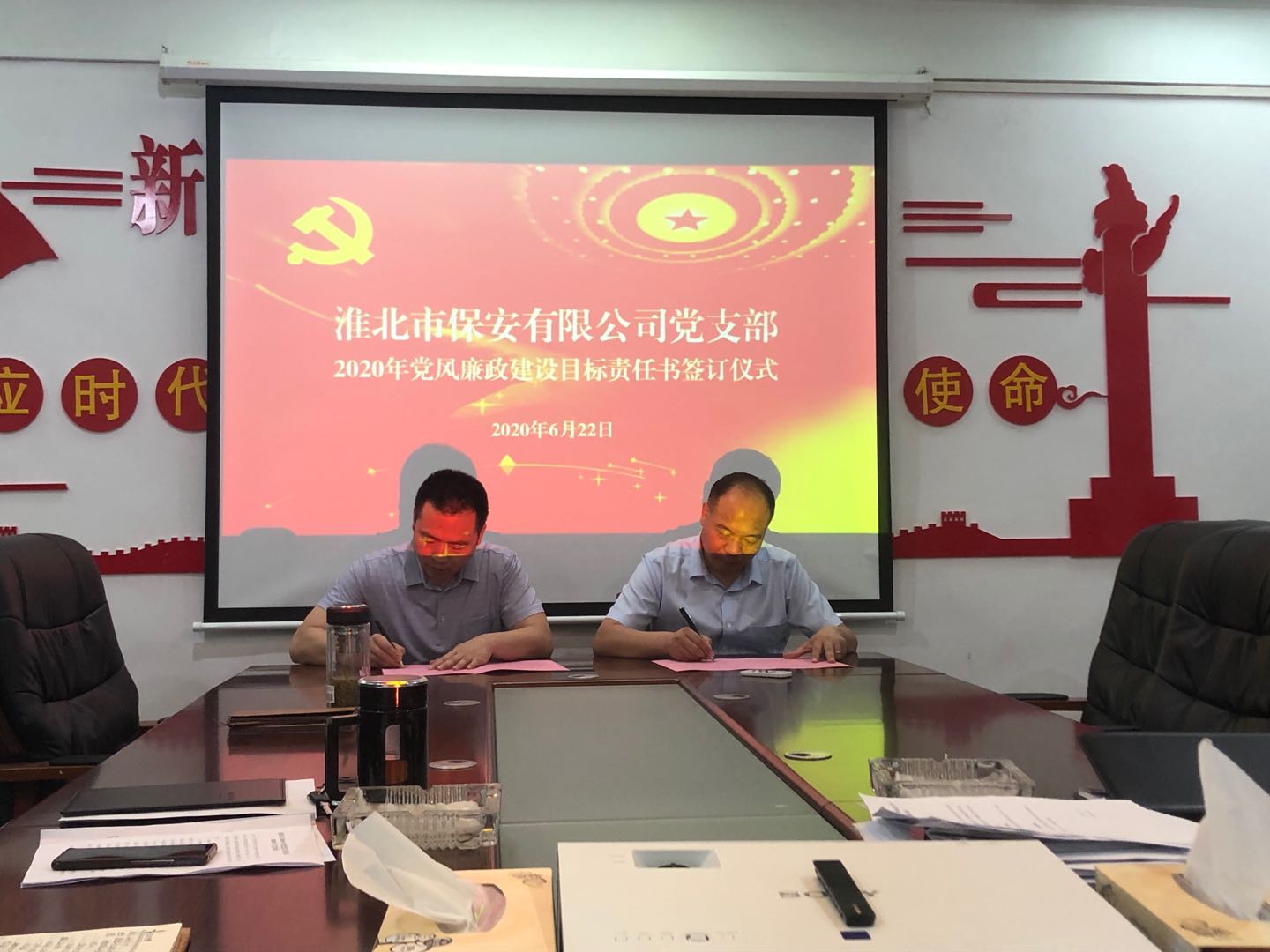 會(huì)后,保安公司黨支部舉行了2020年黨風(fēng)廉政建設(shè)目標(biāo)責(zé)任書簽訂儀式,支部書記與公司經(jīng)營(yíng)班子,經(jīng)營(yíng)班子與中層管理人員簽訂了黨風(fēng)廉政建設(shè)目標(biāo)責(zé)任書,在黨風(fēng)廉政建設(shè)與廉潔自律方面做出的約束,通過(guò)責(zé)任書的簽訂,形成了以上率下、層層壓實(shí)責(zé)任的黨風(fēng)廉政建設(shè)責(zé)任體系,進(jìn)一步武裝員工思想,筑牢了拒絕腐敗的思想道德防線,增強(qiáng)了全體黨員干部的廉潔自律意識(shí),確保黨風(fēng)廉政建設(shè)責(zé)任落實(shí)到位,為保安公司的高質(zhì)量發(fā)展提供了保障。
