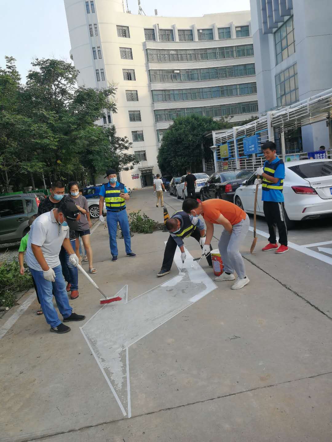 由于人民醫(yī)院住院部停車泊位緊張、車輛停放密集,施工必須在停放車輛駛出清場后,才能進(jìn)行。為了不影響市民停車避開停車高峰,公司工作人員需要在中午、凌晨乃至半夜進(jìn)行劃線任務(wù)。雖然辛苦,但是我們畫起線來一絲不茍,為了減少雨水對停車線的侵蝕,畫停車線時反復(fù)多次施劃增加耐久度,為了整齊美觀,施劃每一條線時都會用標(biāo)尺認(rèn)真的比量??此坪唵蔚膹?fù)描劃線工作,實際上仍存在很大的工作阻力,市民因為不能第一時間停車有所抱怨對我們工作人員的工作造成了一定的困擾,但是我們依舊積極協(xié)調(diào)、解釋和溝通,圓滿的完成了復(fù)描任務(wù),讓原本斑駁的車位線煥然一新。