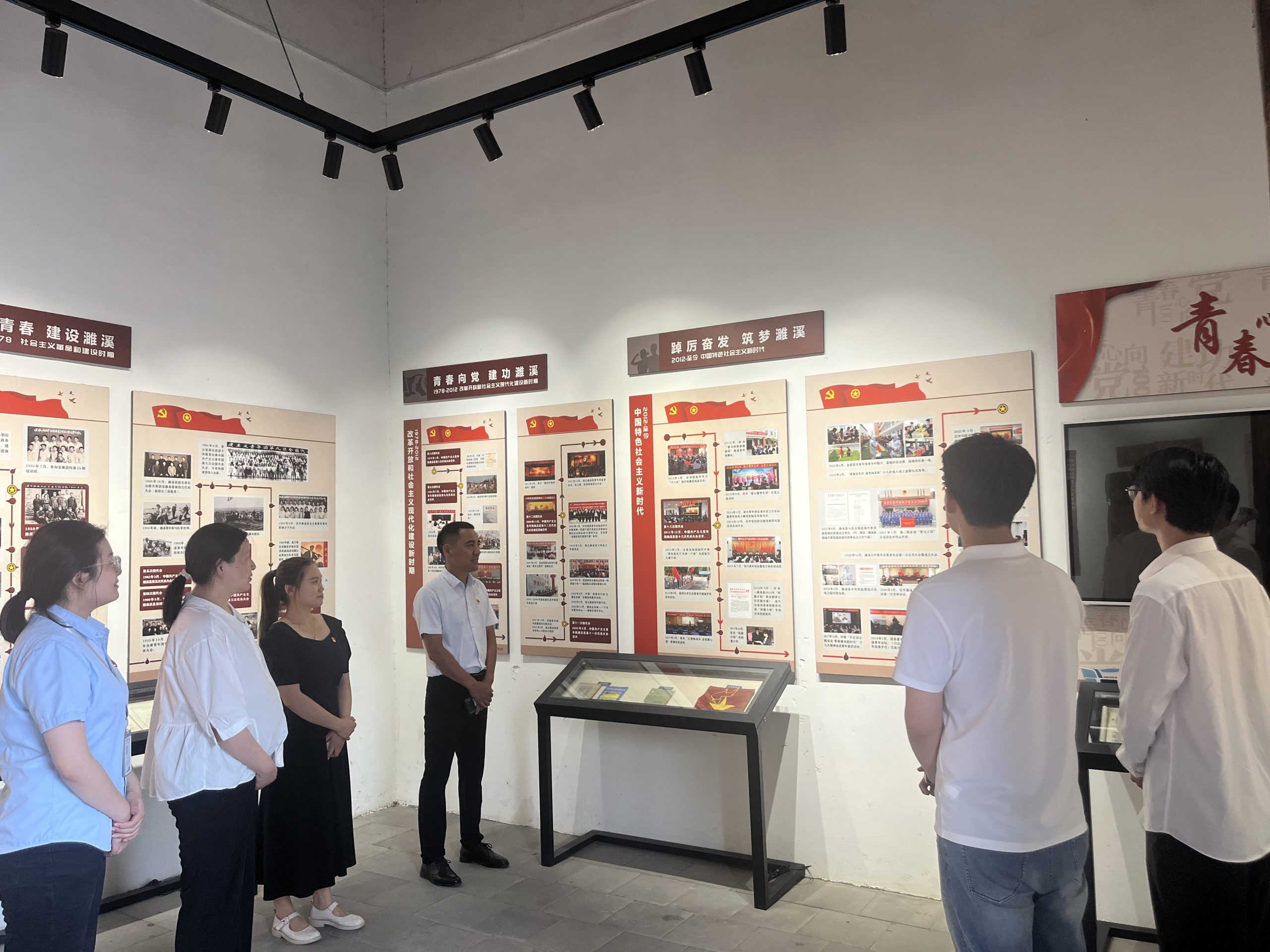 在濉溪石板街,黨員們走進(jìn)中共濉溪支部陳列館,陳列館內(nèi)容分為四個(gè)部分:馬克思主義在濉溪的傳播、中共濉溪支部的成立、濉溪黨組織發(fā)展壯大以及濉溪早起黨史人物。一幅幅歷史畫面、一件件文物展現(xiàn)了當(dāng)年黨支部成立時(shí)的場(chǎng)景,展示著建黨初期的濉溪革命史實(shí)。