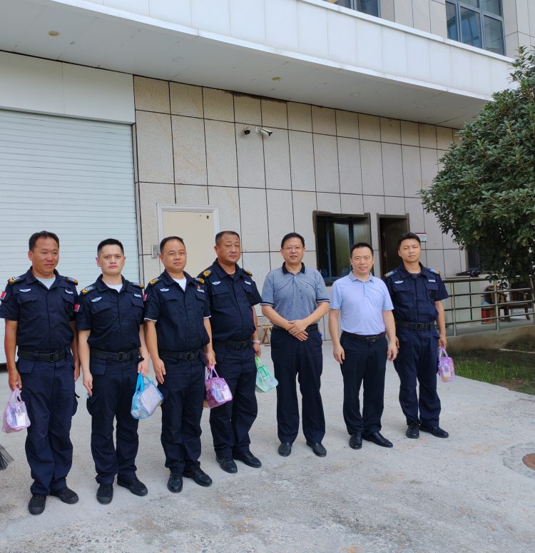 近日,隨著夏季高溫的持續(xù),淮北大地驕陽似火,酷暑難耐。7月31日上午,為表達對堅守在一線的押運和保安隊員的深切關懷,集團公司黨委委員、副總經(jīng)理張立哲同志一行分別前往保安公司押運徽商銀行駐點、人防電廠2號門駐點,為在高溫下辛勤工作的隊員們送去了香皂、洗發(fā)水、花露水等慰問品,并送上一份清涼與關愛。