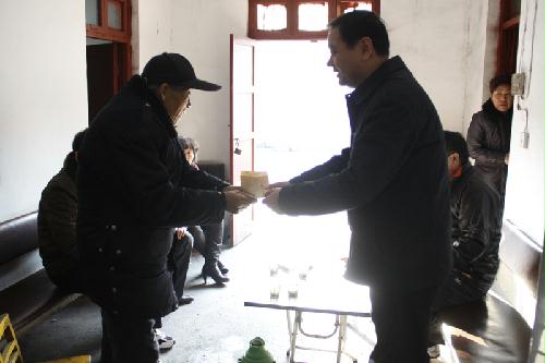 2011年12月10日上午,淮北市建投控股集團有限公司黨組書記、總經理任啟峰、副總經理宋平等領導同志來到烈山區(qū)宋疃鎮(zhèn)雷山社區(qū)看望貧困黨員,并送上了米、油等生活用品。