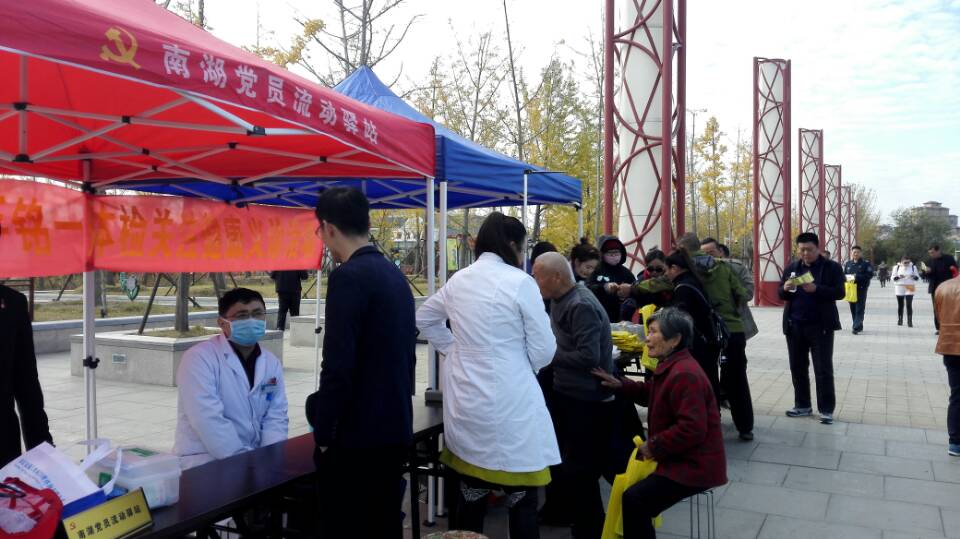 活動現場,黨員志愿者張貼黨的十九大宣傳海報、擺放黨的十九大宣傳展架,向廣大游客發(fā)放黨的十九大宣傳單,并組織開展義診活動,得到廣大游客的熱情歡迎。