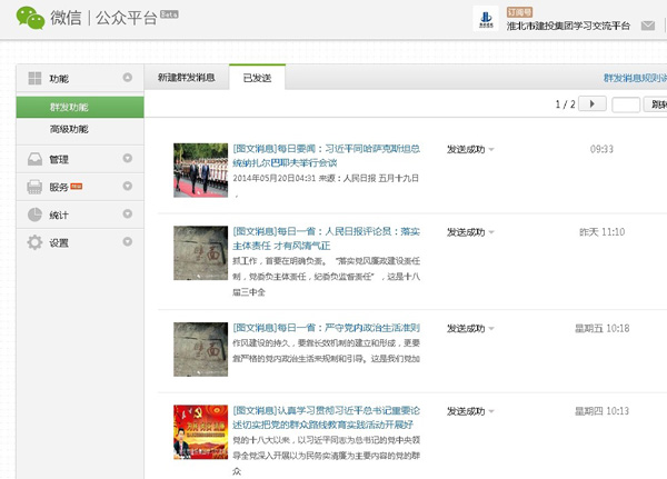 微信平臺(tái)共開(kāi)設(shè)7個(gè)板塊:時(shí)政要聞、群教專題、黨風(fēng)廉政、集團(tuán)動(dòng)態(tài)、每日一警、每日一省、每日一學(xué),通過(guò)微信以圖文、音頻、視頻等形式,第一時(shí)間傳達(dá)上級(jí)精神要求,及時(shí)傾聽(tīng)群眾呼聲,用更直接、更喜聞樂(lè)見(jiàn)的方式宣傳黨的群眾路線教育實(shí)踐活動(dòng),微信平臺(tái)的親和力和互動(dòng)性,有效拉近了黨群干群關(guān)系,促進(jìn)了干部群眾的工作熱情。
