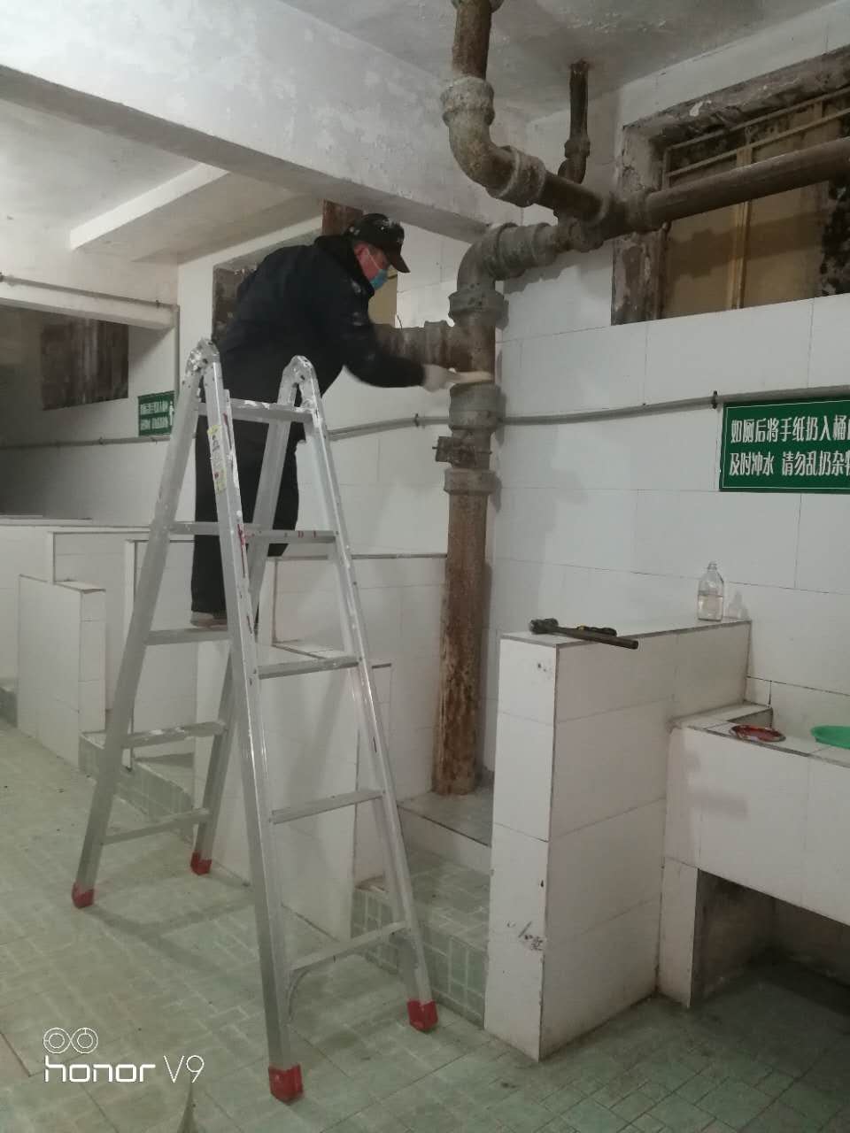 二中院內(nèi)的公廁從以前的破舊不堪到如今的整潔衛(wèi)生都離不開(kāi)停車場(chǎng)班組的悉心維護(hù)。新年有新氣象,為了使二中公廁更潔凈更安全,讓來(lái)公廁方便的市民更安心,二中停車場(chǎng)班長(zhǎng)馬毓森同志不畏寒冷,不怕臟,不怕累,為公廁內(nèi)裸露在外的管道作了除銹防腐處理并刷上油漆,以防管道年久失修發(fā)生泄露給市民帶來(lái)麻煩。
