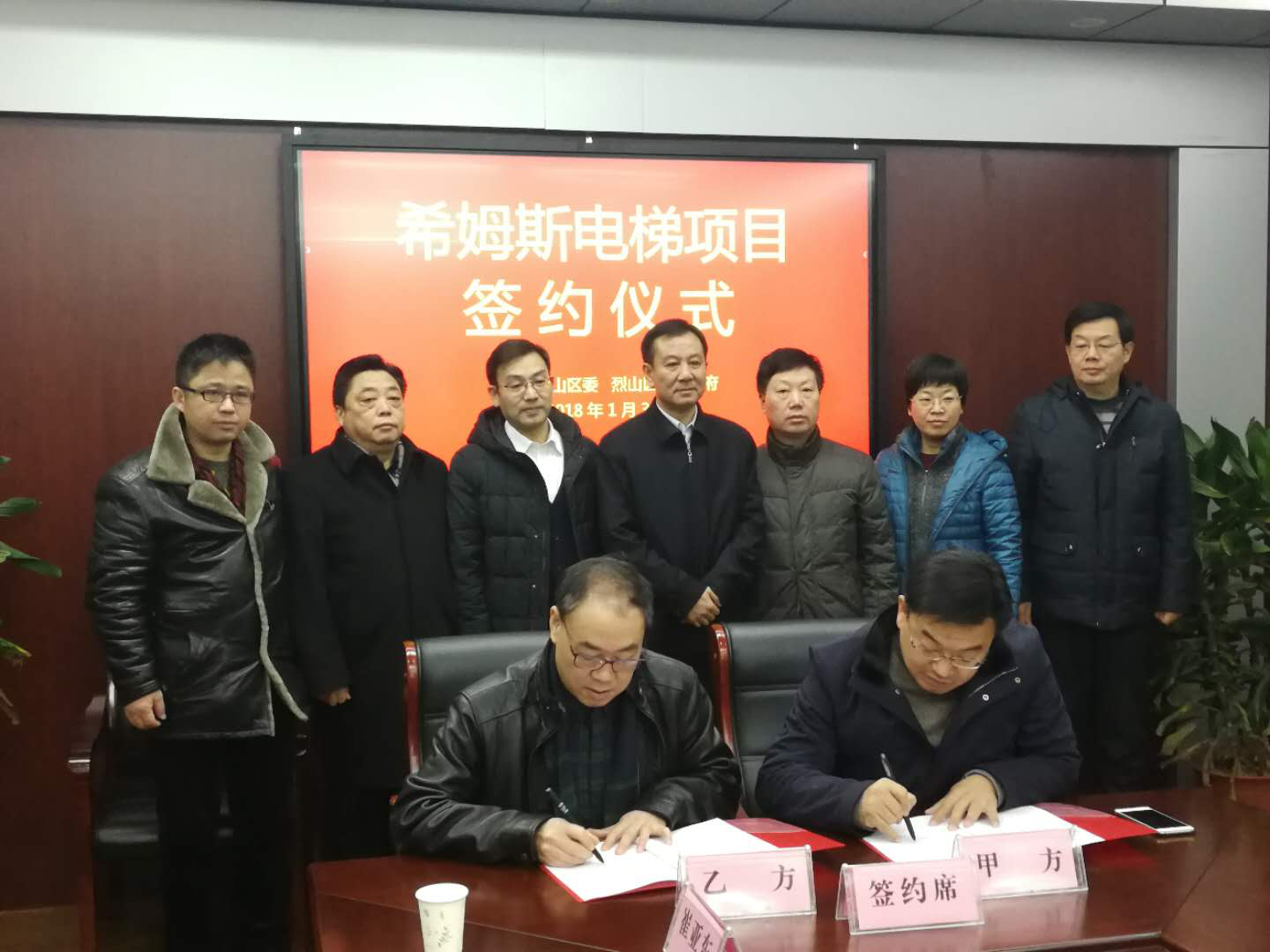 2018年1月30號(hào)上午,希姆斯電梯(淮北)有限公司與希姆斯電梯(中國)有限公司在淮北市建投集團(tuán)簽定了《希姆斯電梯項(xiàng)目簽約協(xié)議》。淮北市烈山區(qū)區(qū)委書記張力、區(qū)長岳軍芝、區(qū)委副書記馬建國以及副區(qū)長鄧頂宇、區(qū)人大主任陳琳出席了此次簽約儀式,希姆斯電梯(中國)有限公司總經(jīng)理龐文岳、市建投集團(tuán)總經(jīng)理助理周開宇、希姆斯電梯(淮北)有限公司總經(jīng)理崔亞東、董事謝愷以及負(fù)責(zé)人劉波共同見證了這一歷史性的時(shí)刻。