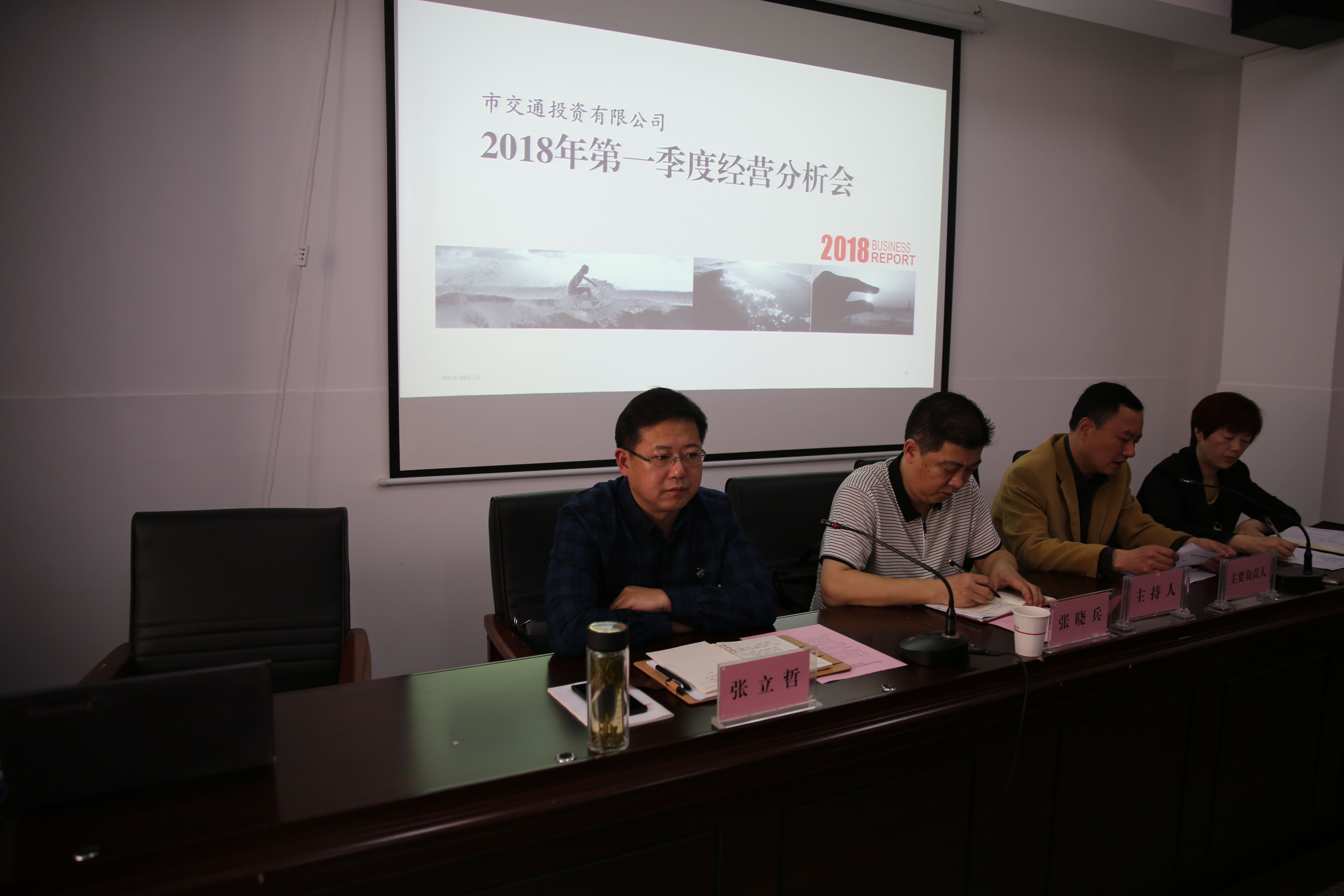 2018年4月1日下午,集團(tuán)公司黨委委員、副總經(jīng)理、交投公司總經(jīng)理張立哲同志在集團(tuán)公司4樓會議室組織召開2018年第一季度經(jīng)營分析會暨2018年第一次專題黨課,參加會議的成員有交投公司全體人員、下屬子公司經(jīng)營班子、中層管理人員、各公司財(cái)務(wù)人員及交投公司全體黨員。