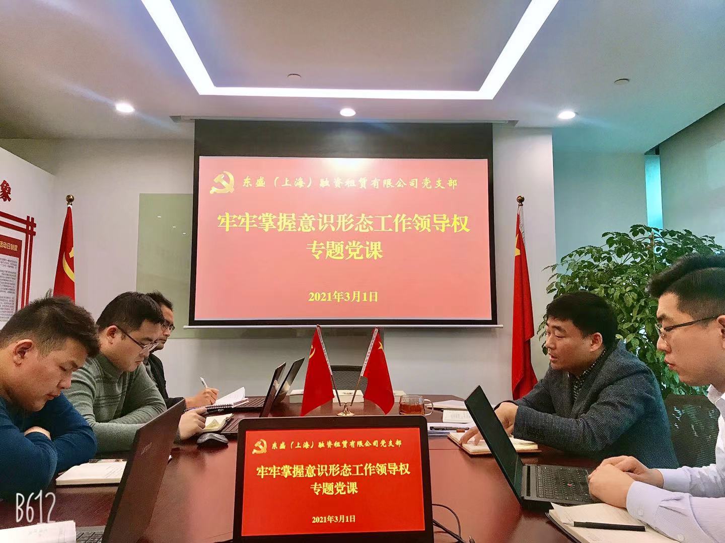 為加強東盛融資租賃公司意識形態(tài)工作,3月1日上午,支部書記王智同志為全體黨員干部上了一堂主題為《牢牢掌握意識形態(tài)工作領導權》的專題黨課。