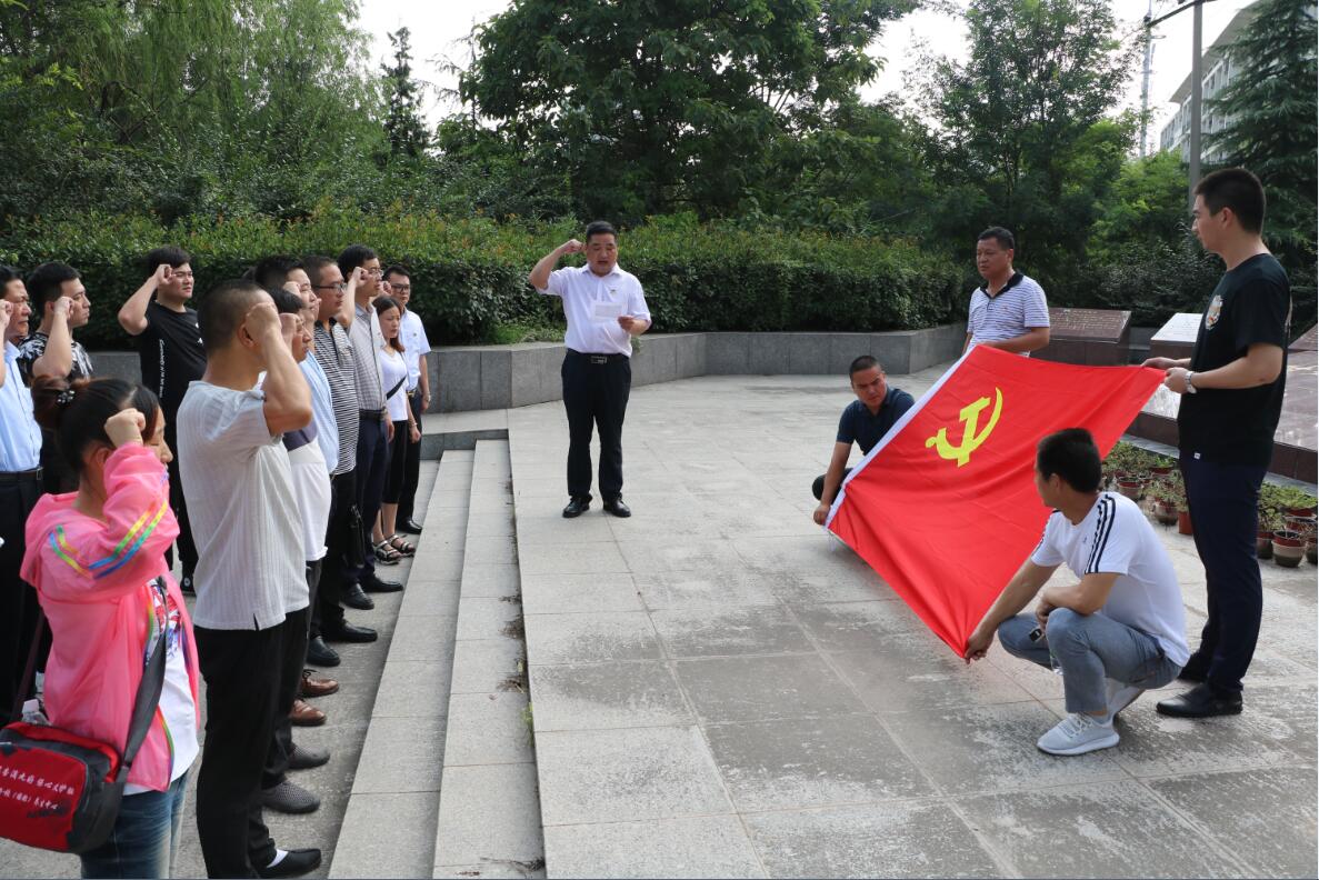 參加活動的全體黨員在烈士紀(jì)念碑前,向烈士紀(jì)念碑三鞠躬,深切緬懷烈士們的豐功偉績,深情瞻仰烈士紀(jì)念碑,向革命烈士致以深深的敬意。全體人員在革命烈士紀(jì)念碑前列隊向黨旗莊嚴(yán)宣誓,重溫入黨誓詞。