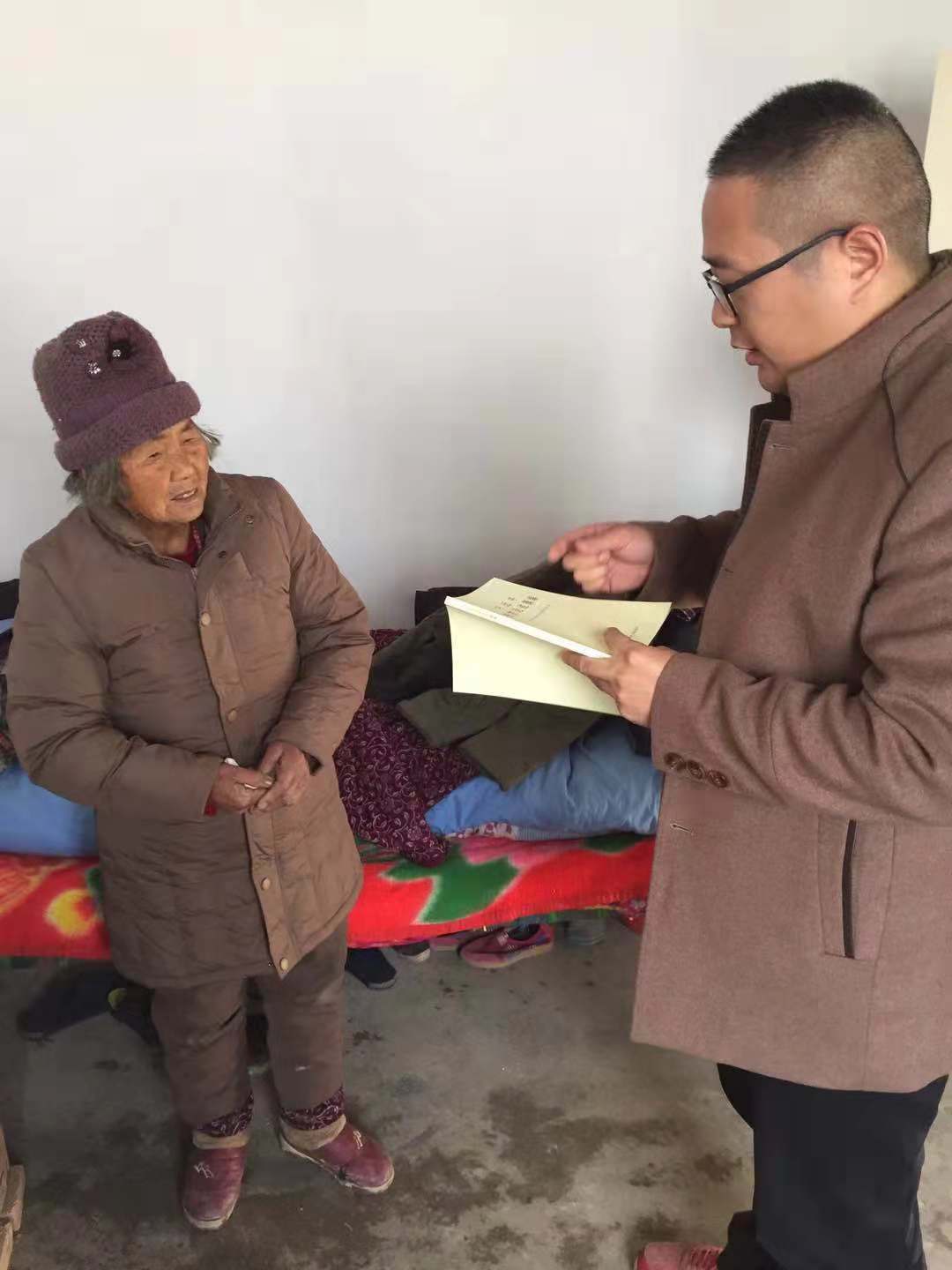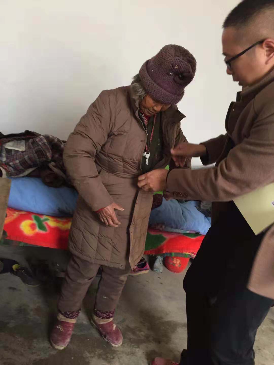 初冬已過(guò),寒冬將至。連續(xù)幾日的降雨,氣溫已漸降至冰點(diǎn)。2018年12月7日,保障房公司幫扶小組冒著嚴(yán)寒來(lái)到孫嚴(yán)玲老人家中,為老人送去了各自家中閑置的羽絨服、保暖內(nèi)衣等保暖用品。“這個(gè)襖穿身上輕的很,還暖和,今年冬天不冷了”,孫嚴(yán)玲老人激動(dòng)地說(shuō)。