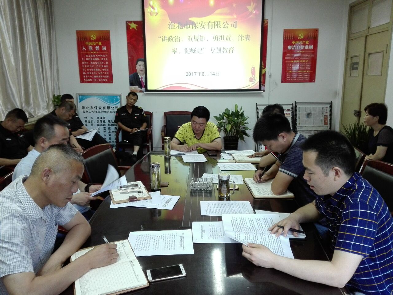 6月14日,按照“兩學一做”學習教育活動安排部署,保安公司黨支部組織黨員開展“講政治、重規(guī)矩、勇?lián)?、作表率、促崛?rdquo;專題教育活動。會議由支部書記李戰(zhàn)備同志主持,支部成員、黨員代表共計22人參加會議并做交流發(fā)言。