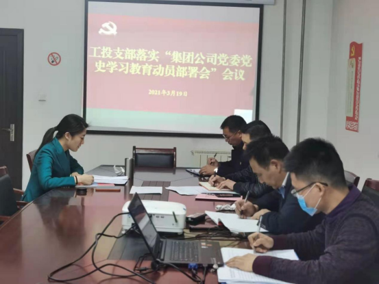 為貫徹落實集團公司黨委黨史學(xué)習(xí)教育動員部署大會的會議精神,3月19日下午,工投黨支部召開黨史學(xué)習(xí)教育動員大會。
