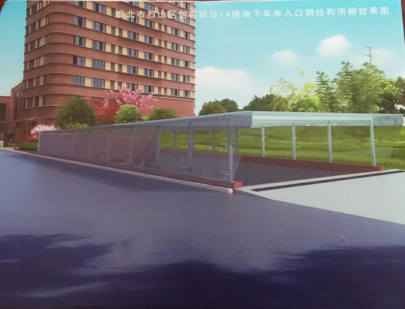 創(chuàng)客驛站1#樓地下車庫入口鋼結(jié)構(gòu)雨棚效果圖
