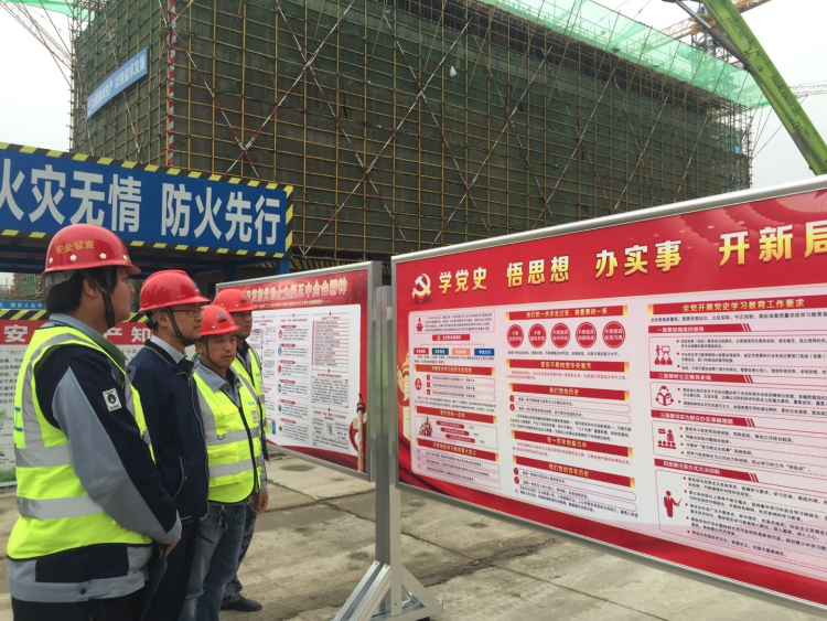 建立“項目讀書點”,常態(tài)化學習不間斷。黨支部在原有黨員活動室的基礎上,在工地開辟黨史讀書角作為“項目讀書點”。通過張貼懸掛學習教育宣傳海報、條幅,配備《論中國共產黨歷史》《中國共產黨簡史》等黨史書籍,營造學黨史的火熱氛圍,讓“項目讀書點”成為一線黨員學黨史的主陣地,引導廣大黨員干部知黨史、懂黨史,內化于心。