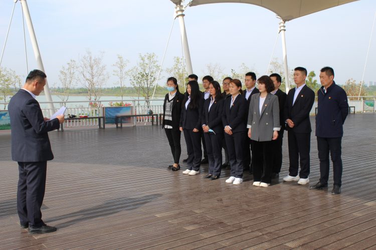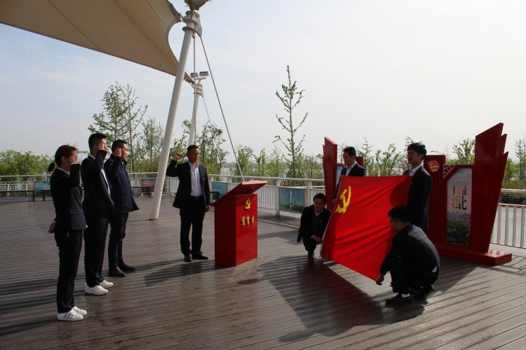 4月27日,融通黨支部組織黨員及支部新發(fā)展的黨員前往綠金湖圓夢島舉行了莊嚴而隆重的黨員宣誓活動。在融通黨支部副書記馬振林的帶領下,支部3名新發(fā)展黨員面對黨旗莊嚴宣誓,短短一百多字的誓言是他們對黨的承諾,是他們一生銘記的宣言。