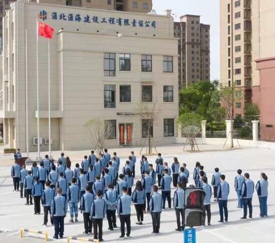淮海建工公司黨總支努力將紅色基因根植于每名黨員干部心中,每月初組織全體黨員干部舉行升旗儀式。5月6日上午九時,在雄壯的國歌聲中,鮮艷的五星紅旗伴隨朝陽緩緩升起,迎風(fēng)飄揚,莊嚴的升國旗儀式感染著現(xiàn)場每一名淮海建工人。在升旗儀式現(xiàn)場,同時舉行公司月度生產(chǎn)經(jīng)營表彰會議,總結(jié)生產(chǎn)經(jīng)營工作并評選表彰月度優(yōu)秀項目部、優(yōu)秀部室及優(yōu)秀員工,頒發(fā)榮譽證書。旗手由優(yōu)秀員工擔(dān)任,優(yōu)秀代表在國旗下發(fā)言,通過這些環(huán)節(jié),結(jié)合黨史學(xué)習(xí)教育,鼓勵號召全體黨員干部,立足自身崗位,“實”當(dāng)頭,“干”為先,用汗水澆灌成長,用實干篤定前行,積極投身公司發(fā)展大業(yè),以優(yōu)異成績獻禮建黨100周年。