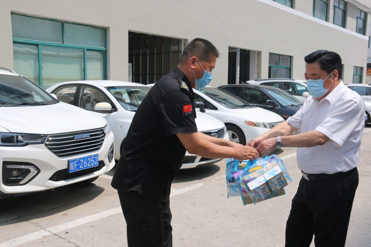 夏日炎炎,8月17日上午,市金控集團總經(jīng)理周開宇一行來到保安公司的各個派駐點慰問一線的安保人員,并將防暑降溫物品送到他們手中,給頂著驕陽在戶外工作的他們降降溫。